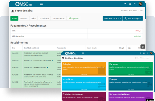 Com o MSC Hub, você automatiza processos e conecta todos os setores da sua loja em um único sistema. Reduza erros, ganhe produtividade e concentre-se em expandir seu negócio.